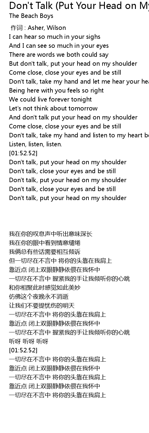 | [02:41.36] | Don' t talk, put your head on my shoulder |