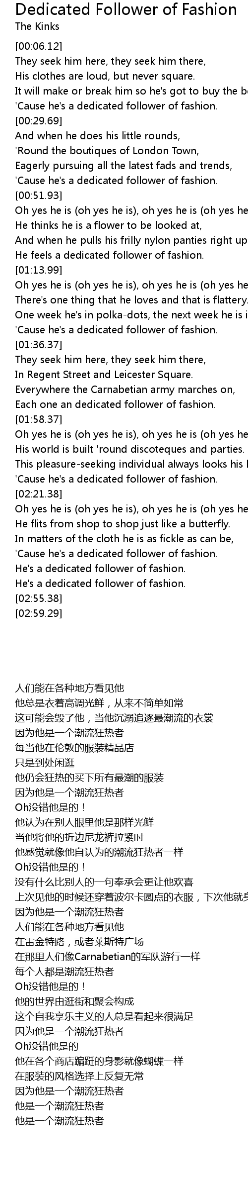 'Cause he's a dedicated follower of fashion. |