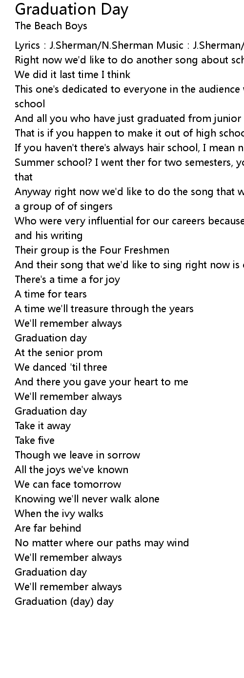 | And their song that we' d like to sing right now is called ' Graduation Day' | |