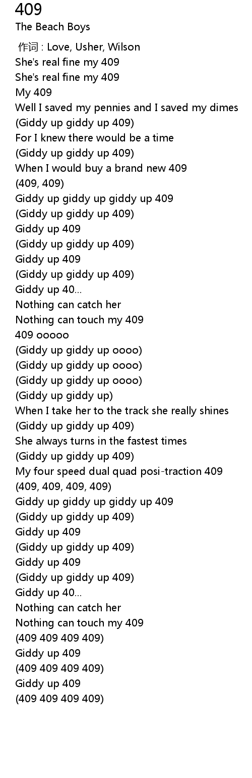 | [00:34.20] | Giddy up giddy up giddy up 409 |