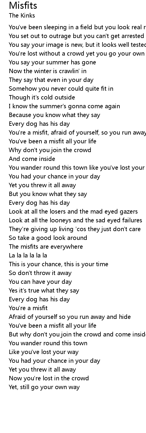 | [01:43.000] | You've been a misfit all your life |
