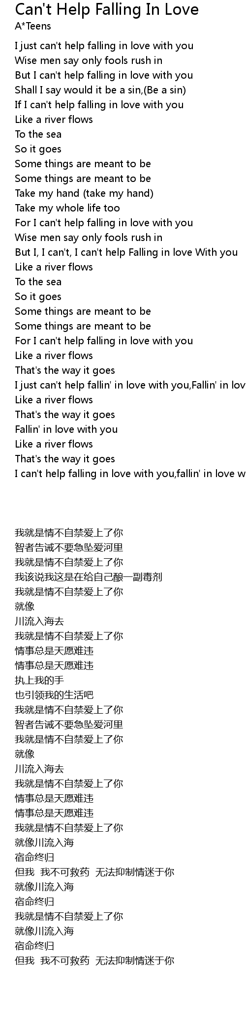 I just can't help fallin' in love with you,Fallin' in love with you |