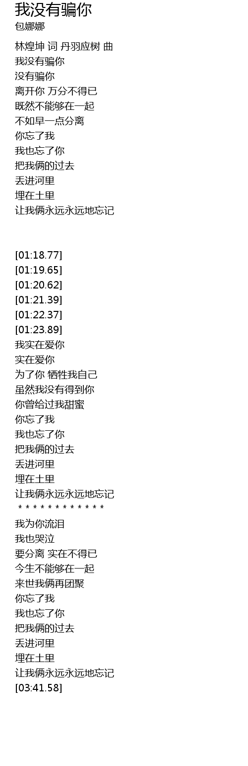 | [00:22.29] | wǒ méi yǒu piàn nǐ |