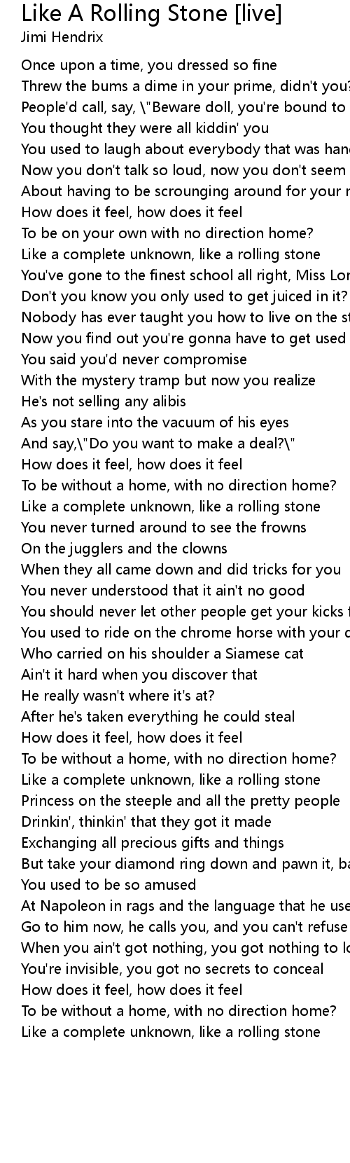 Like a complete unknown, like a rolling stone |