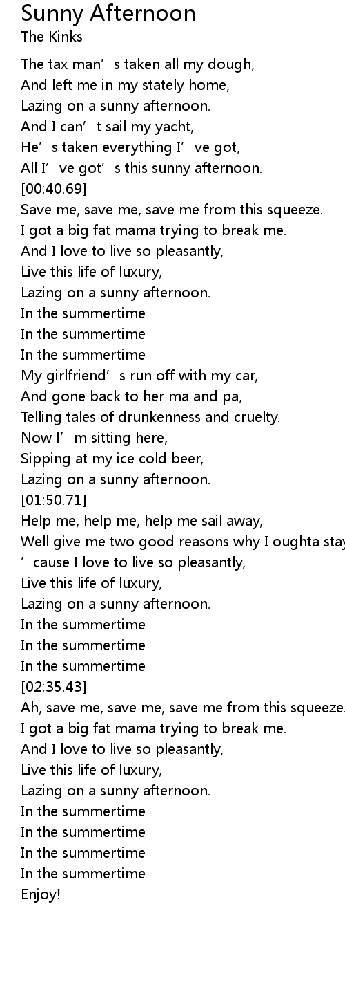 | [01:45.84] | Lazing on a sunny afternoon. |