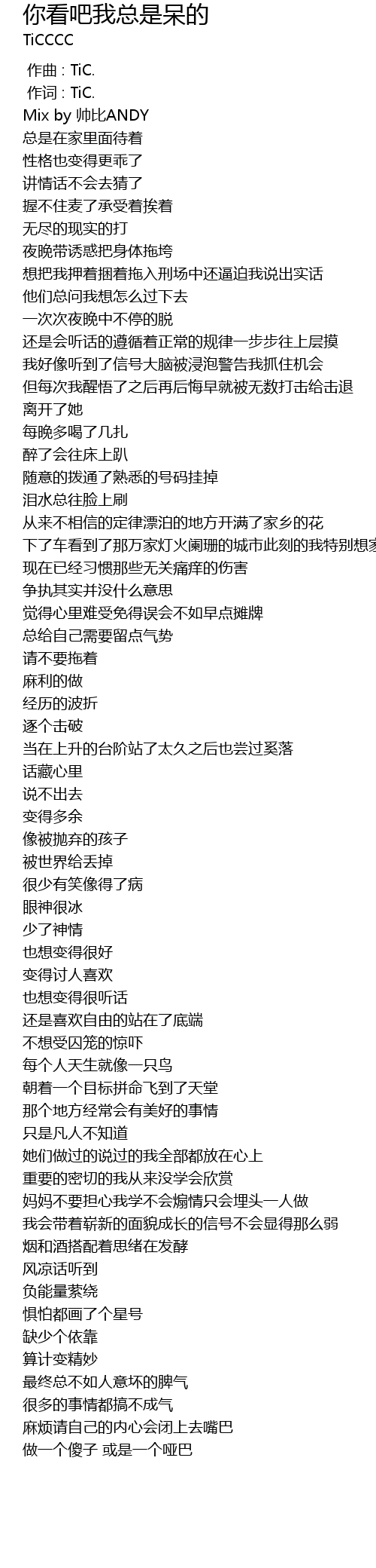 | [00:04.92] | Mix by 帅比ANDY |