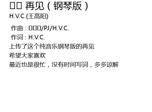 | [00:01.000] | 上传了这个纯音乐钢琴版的再见 |