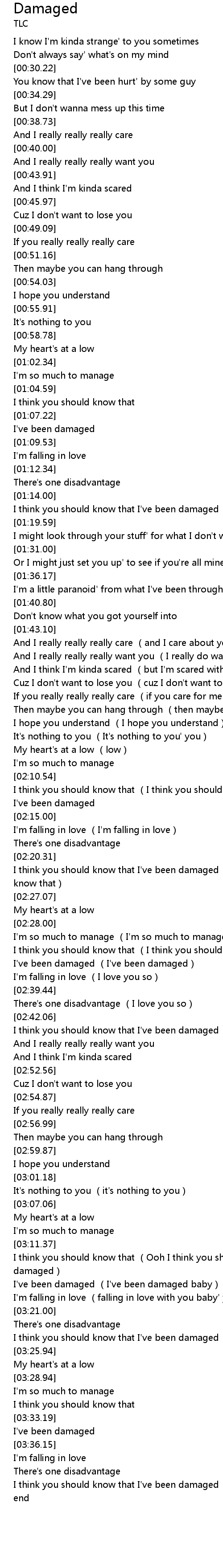 | [03:12.62] | I think you should know that (Ooh I think you should know I've been damaged) |
