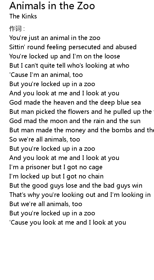 | You' re just an animal in the zoo | |
