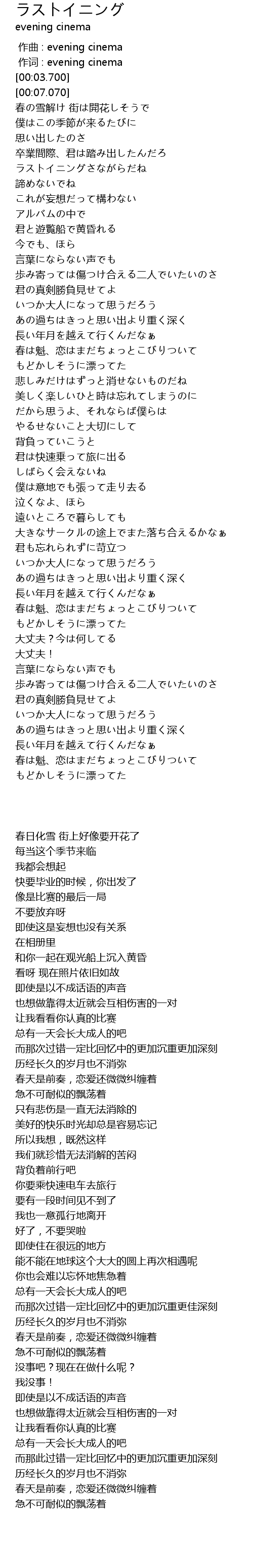 | [00:01.000] | zuò cí : evening cinema |