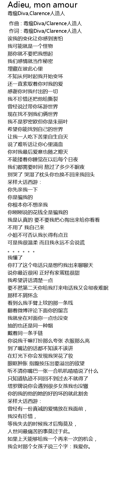 | [00:01.000] | 作词 : 毒瘤Diva/Clarence人造人 |