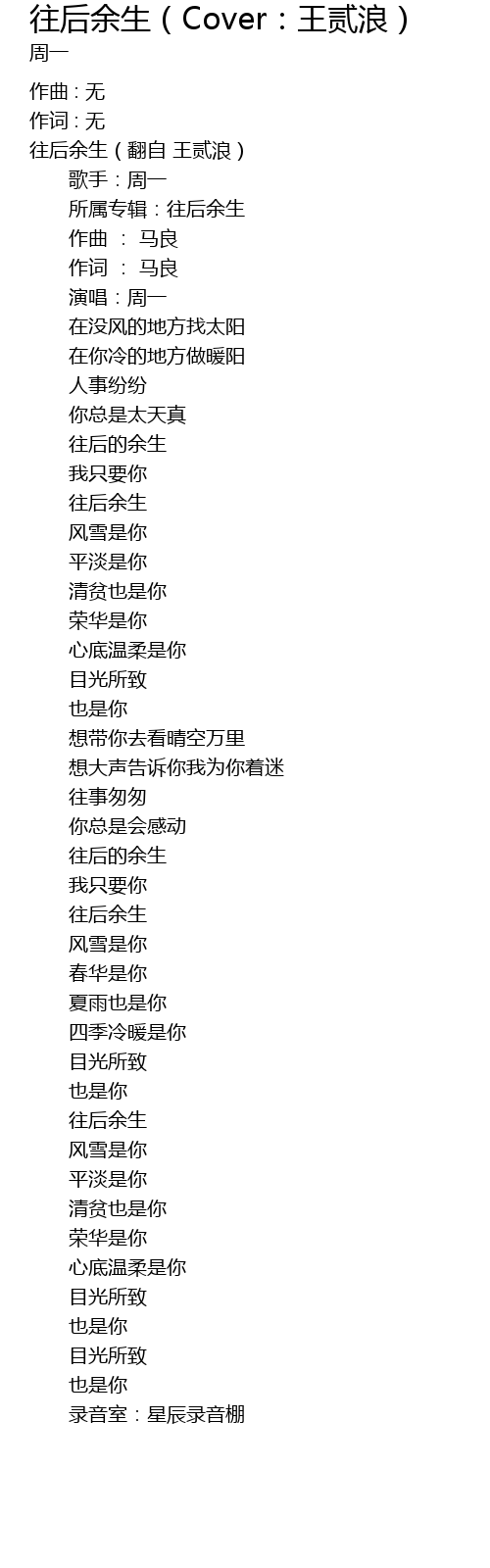 | 往后余生(翻自 王贰浪) | |