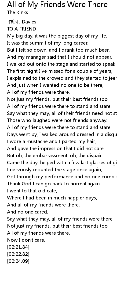 | [02:14.28] | All of my friends were there, |