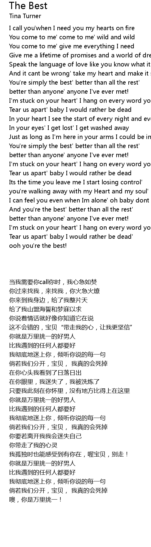 You're simply the best' better than all the rest' |