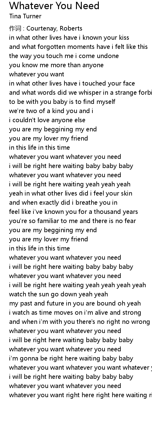 | whatever you want whatever you need | |