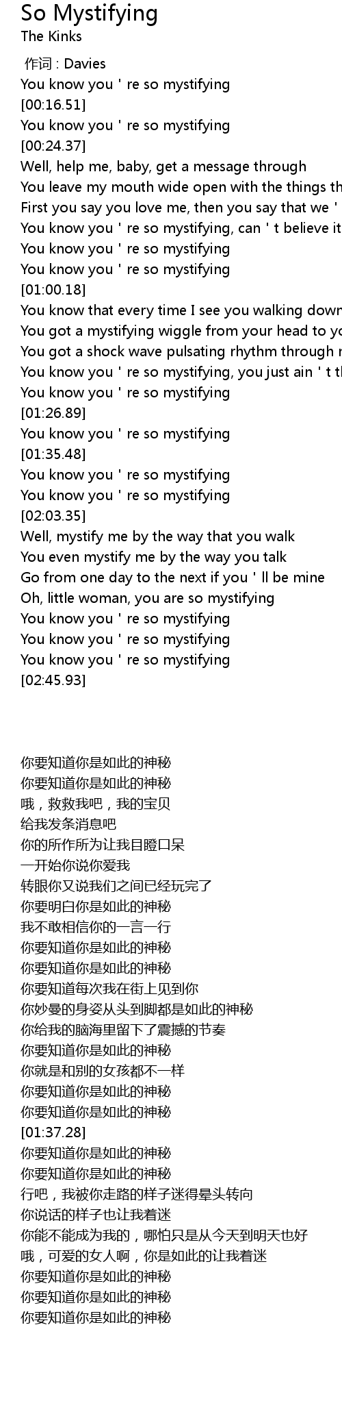 | [00:40.37] | You know you re so mystifying, can t believe it s true |