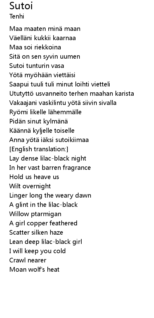| Saapui tuuli tuli minut loihti vietteli | |