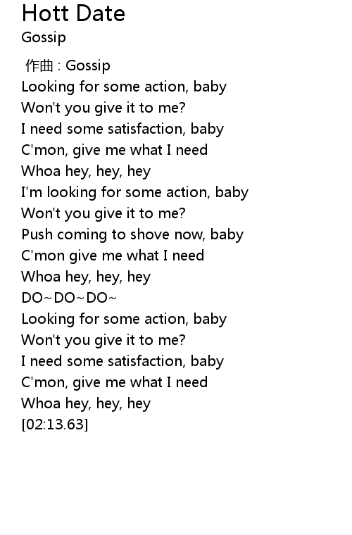 | [00:53.68] | I'm looking for some action, baby |