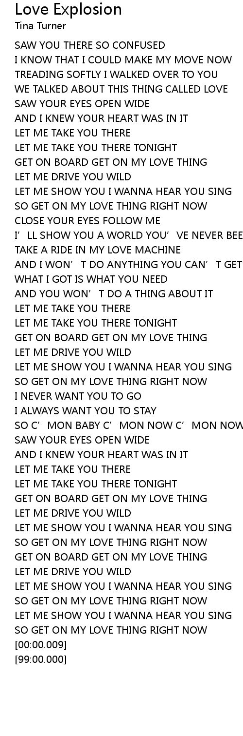 | [01:20.34] | TAKE A RIDE IN MY LOVE MACHINE |