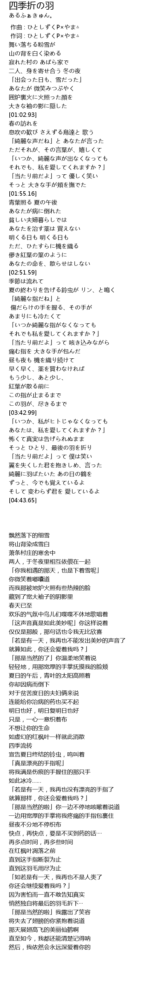 | [04:11.30] | そっと ひとり、最後の羽を折り |