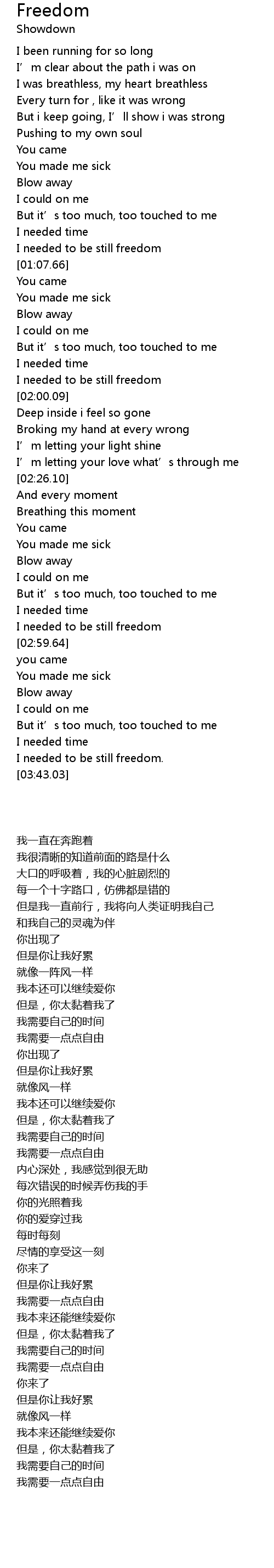 | [02:55.62] | I needed to be still freedom |