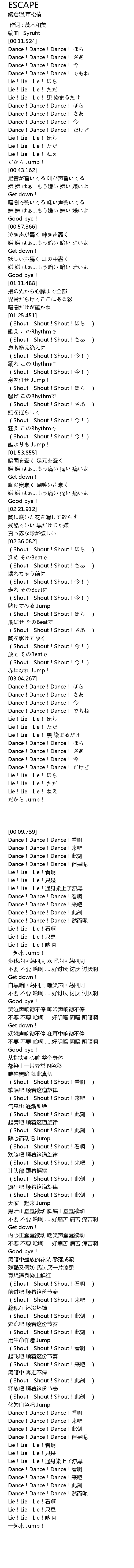 | [01:39.741] | (Shout!Shout!Shout!ほら!) |