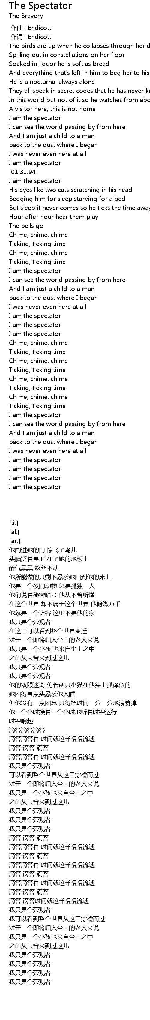 | [01:30.25] | I am the spectator |