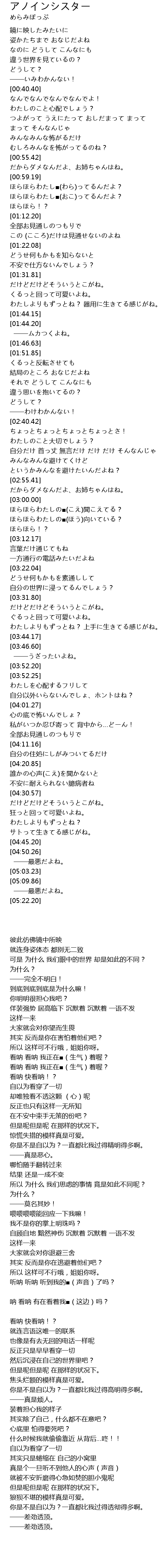 | [03:00.05] | ほらほらわたしの■(こえ)聞こえてる? |