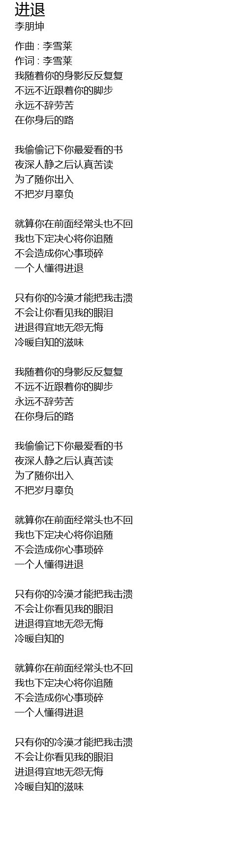 | 作词 : 李雪莱 | |