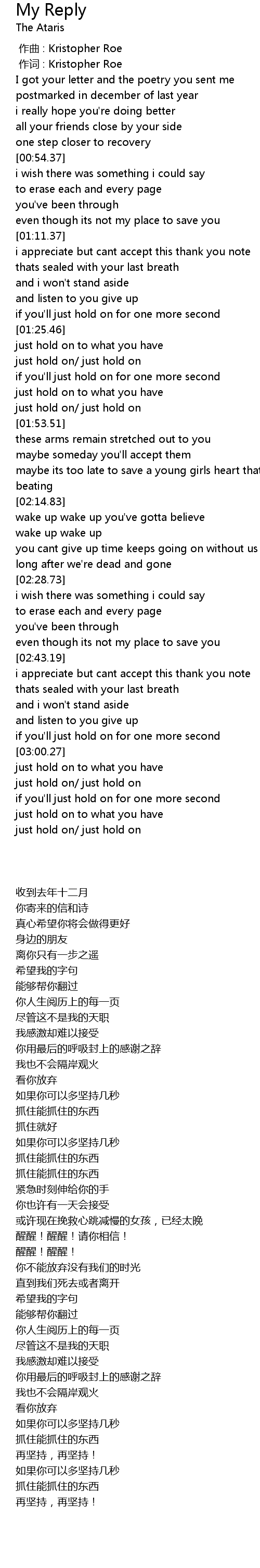 | [03:18.34] | just hold on/ just hold on |