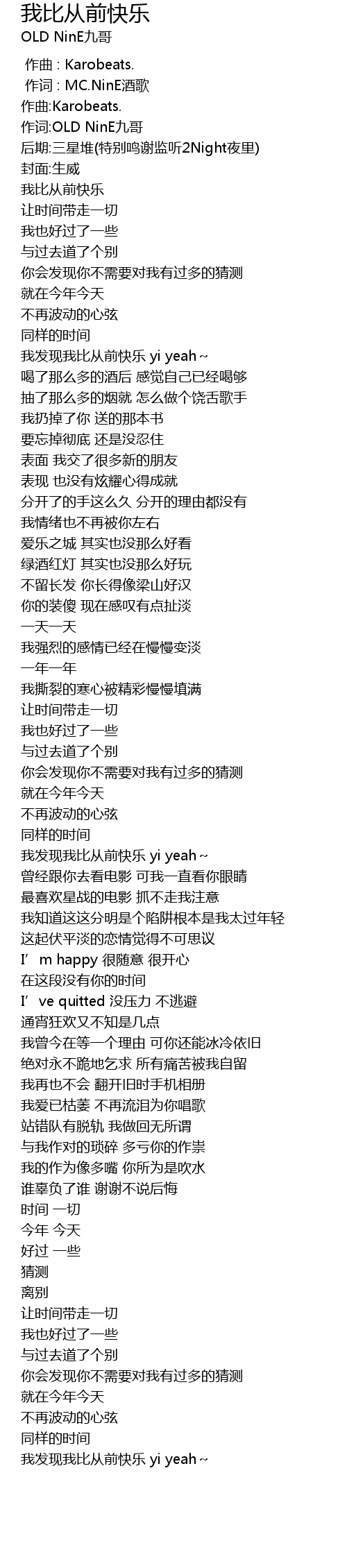 | [01:36.90] | 我发现我比从前快乐 yi yeah~ |
