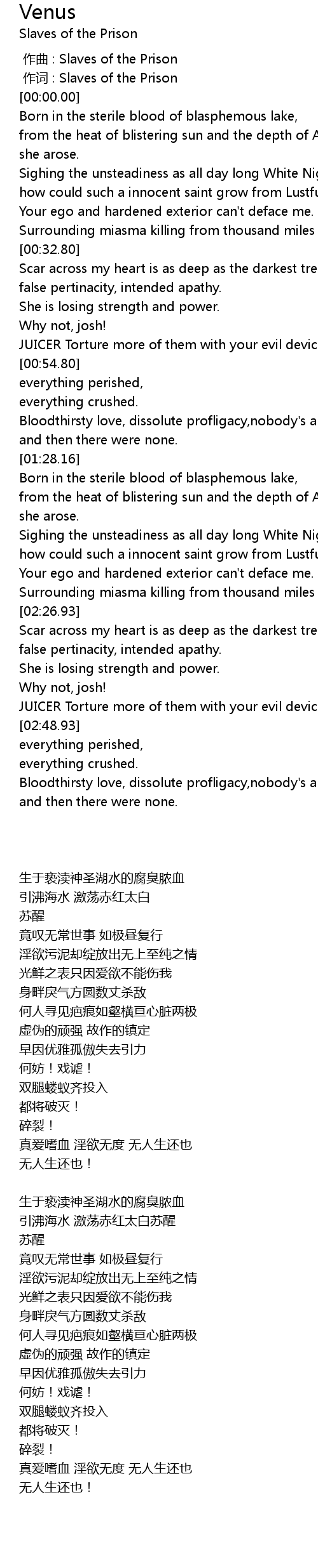 | [00:00.000] | zuò cí : Slaves of the Prison |
