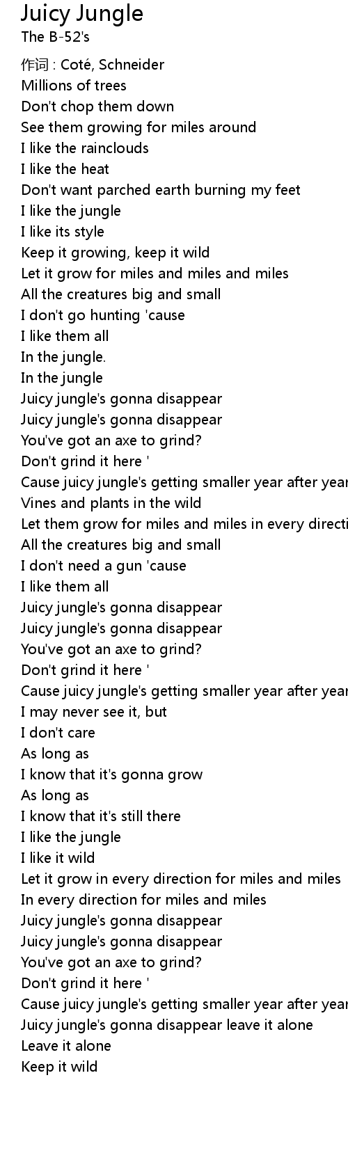 | Cause juicy jungle's getting smaller year after year | |