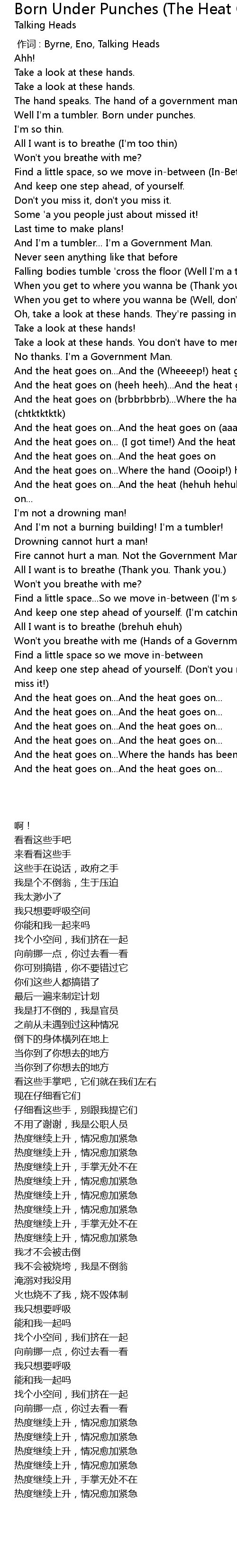 | [00:00.00] | 作词 : Byrne, Eno, Talking Heads |