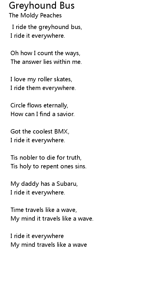| I ride the greyhound bus, | |