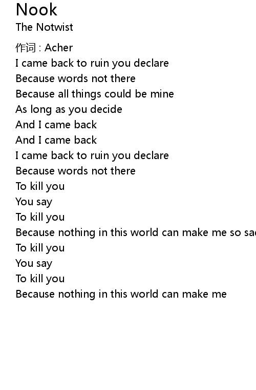 | Song | Nook |