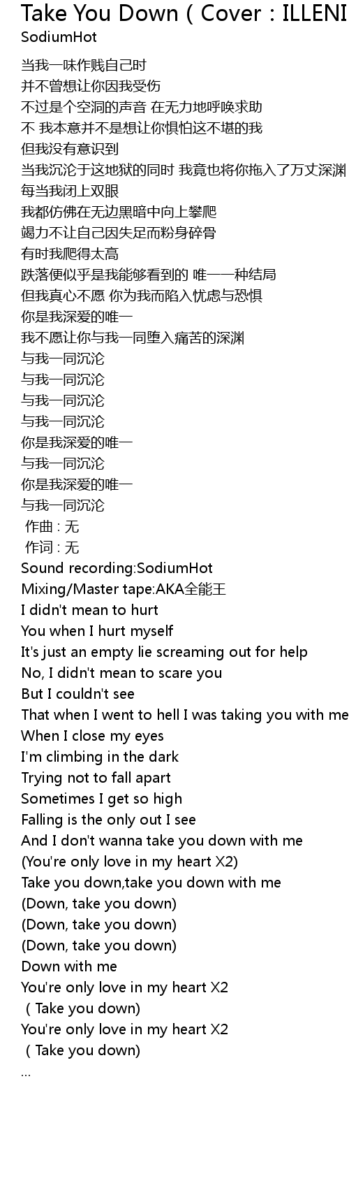 | [00:06.69] | Mixing Master tape: AKA quan neng wang |