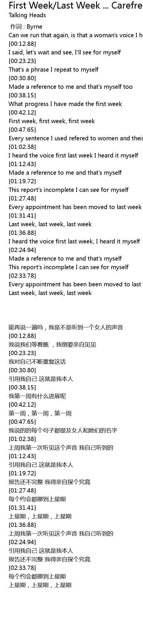 | [01:32.70] | Last week, last week, last week |