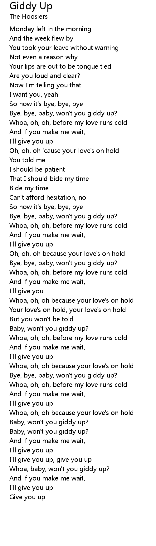 Bye, bye, baby, won't you giddy up? |
