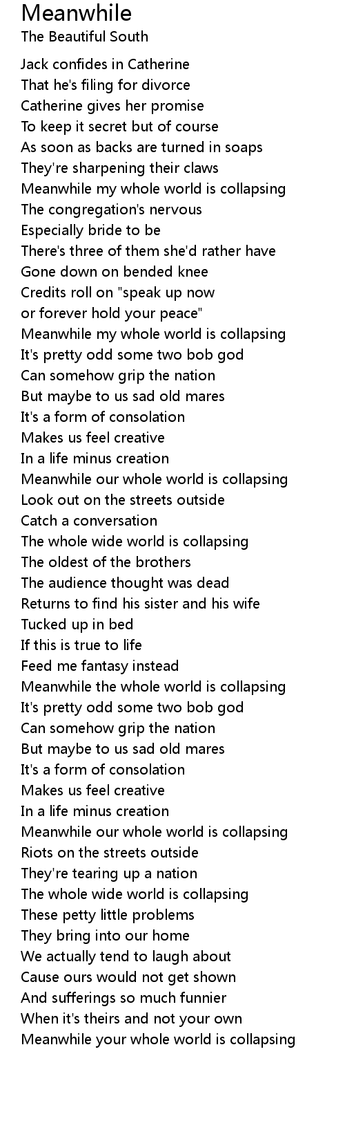 Meanwhile my whole world is collapsing |