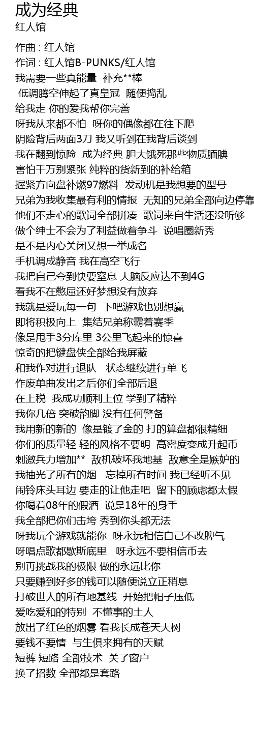 | 作词 : 红人馆B-PUNKS/红人馆 | |