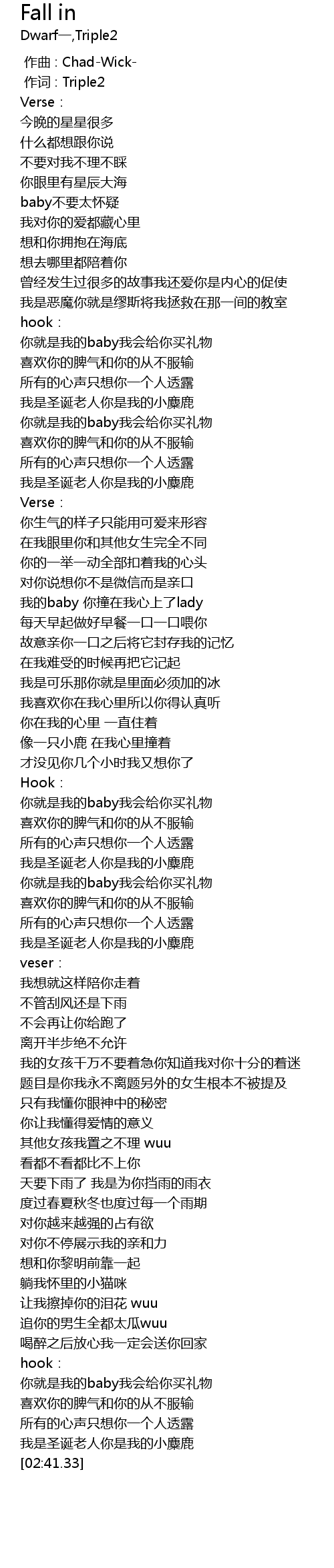 | [00:01.000] | 作词 : Triple2 |