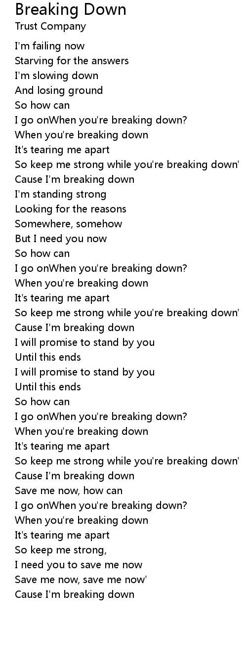 Cause I'm breaking down |