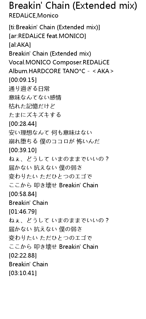 | [00:00.04] | Breakin' Chain Extended mix |