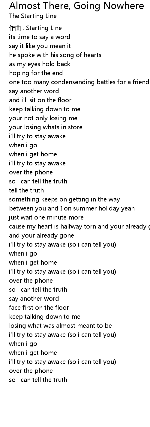| Song | Almost There, Going Nowhere |