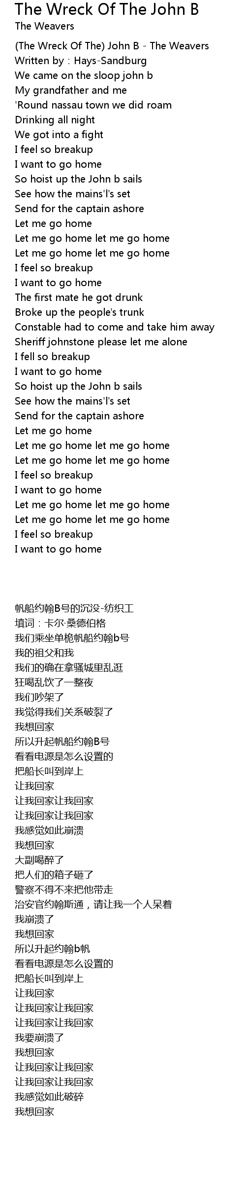 | [00:00.30] | (The Wreck Of The) John B - The Weavers |
