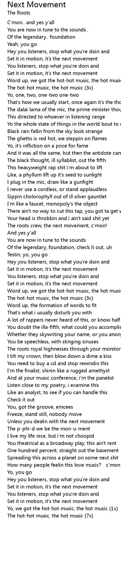 | The roots crew, the next movement, c' mon! | |