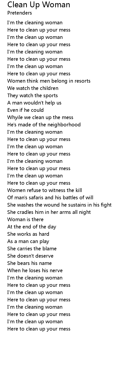 I'm the clean up woman |