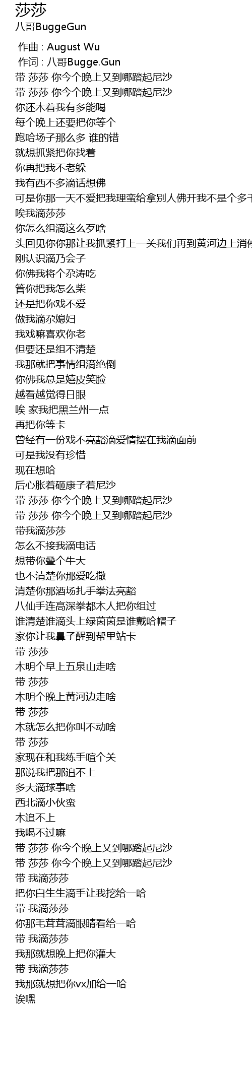 | [00:16.360] | 带 莎莎 你今个晚上又到哪踏起尼沙 |