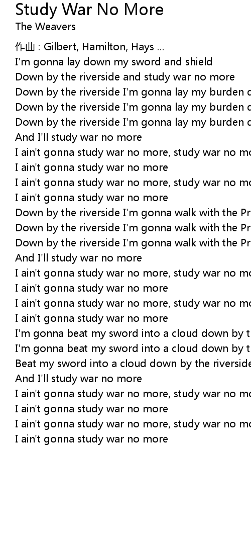 | I' m gonna beat my sword into a cloud down by the riverside, yes it is | |